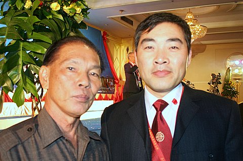 泰国京华中原联合日报公关主任张望世长(左)和关公网站长关志杰(右)合影留念